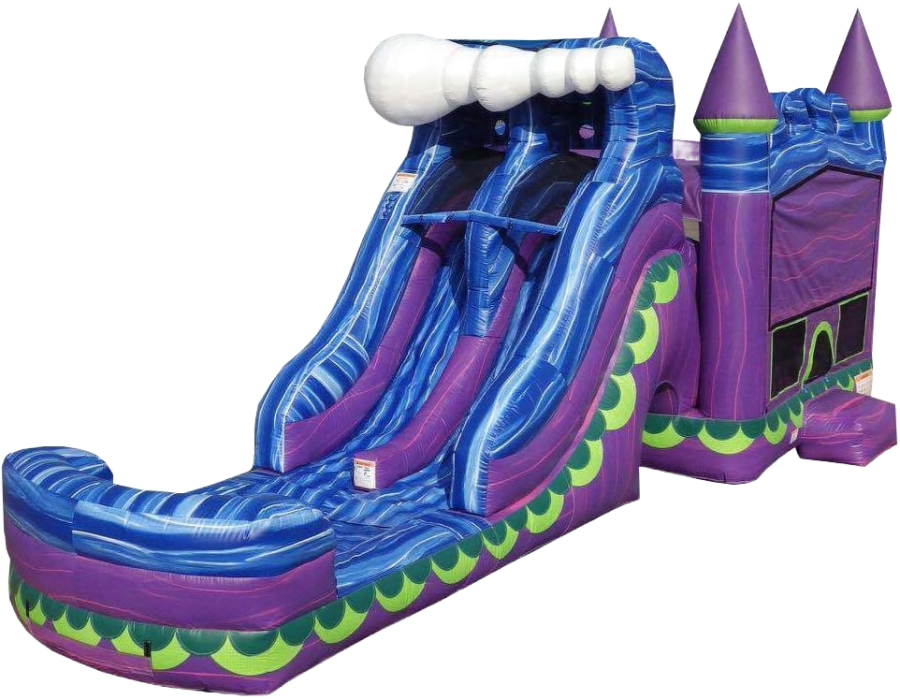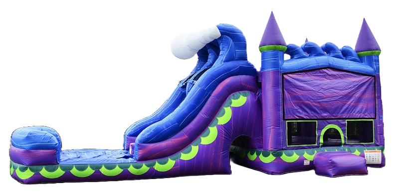 Check out our NEW Rip Tide 6-in-1 Combo! Ride the wave of excitement at your next event with the Rip Tide Combo. This vibrant inflatable features a dual lane water slide, bounce house, climbing wall, obstacle pop-ups, basketball hoop, and tunnel — offering six ways to play! With its bold aqua, blue, and purple ocean theme, the Rip Tide brings nonstop fun to any party. An optional inflatable mermaid tail adds an extra splash of ocean magic for themed events! Perfect for wet or dry use, you can enjoy this unit all year long.