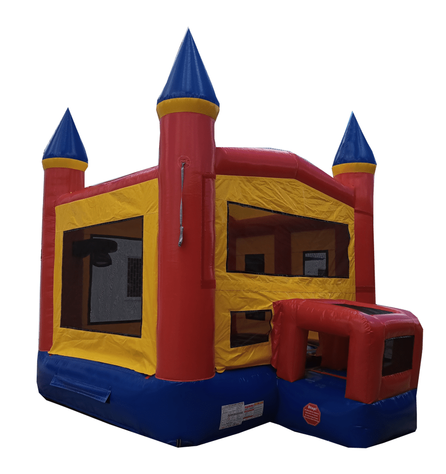 The Jumbo Castle offers a very large jump space and includes a small basketball hoop on the inside. This unit has vibrant colors and is sure to be a hit for any party. This will keep your children entertained for hours of fun.