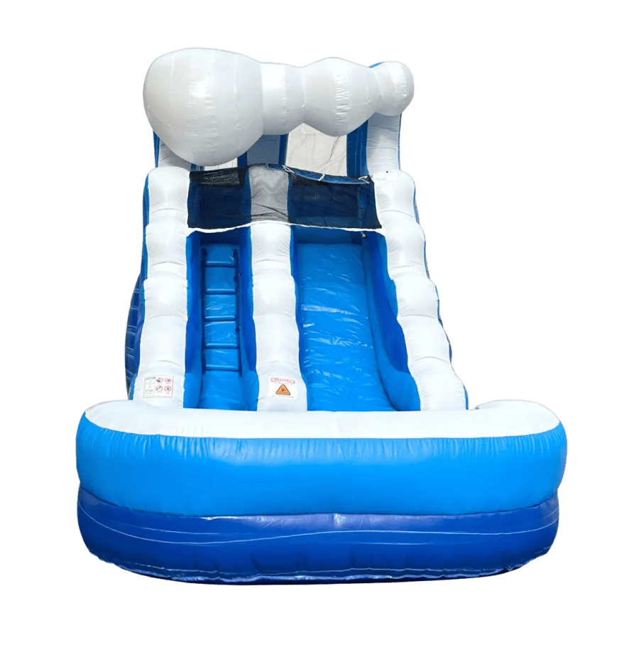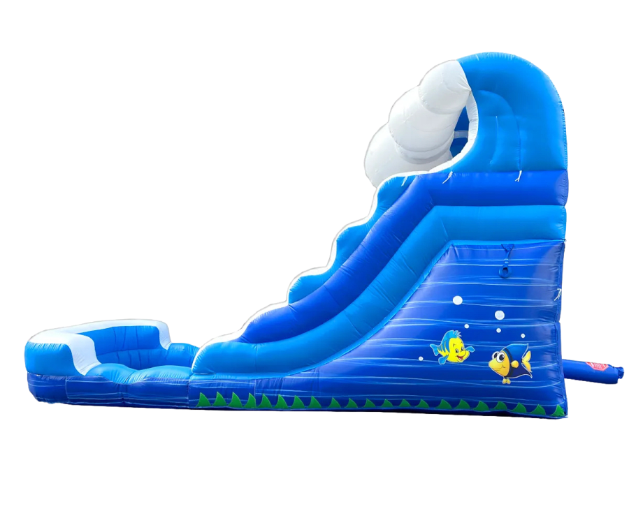 Make a splash at your next event with the 12' Blue Wave Waterslide! Perfect for kids aged 12 and under, this compact yet thrilling slide is designed to bring waves of fun to any gathering. Measuring 21 feet long, 9 feet wide, and standing 12 feet tall, the Blue Wave features a vibrant blue design that mimics the rush of ocean waves. Its single-lane slide ends with a refreshing splash zone, making it ideal for smaller spaces while still packing big fun.